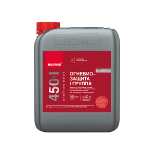Средство для огнебиозащиты древесины «Неомид 450-1» — высокоэффективное средство для огнезащиты и антисептирования древесины для наружных и внутренних работ в условиях, исключающих вымывание состава с обработанной поверхности. Переводит древесину в трудновоспламеняемый и трудногорючий материал, обеспечивая I (первую) группу огнезащитной эффективности по ГОСТ Р 53292-2009, защищает от гниения, возникновения плесени.