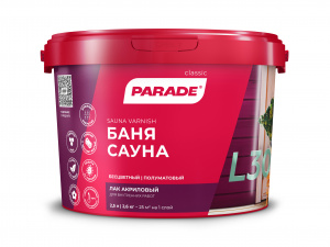 Термостойкий акриловый лак для бань и саун. Для внутренних работ. Предназначен для защитной обработки деревянных поверхностей в парильных, моечных помещениях, раздевалках: стен, потолков, дверей, перегородок, оконных рам и других поверхностей. Не применять для обработки полков бани.