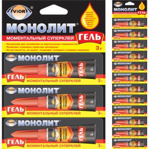 Клей супер секундный ГЕЛЬ AVIORA-МОНОЛИТ 3г, на листе, 12шт./288 (403-202)